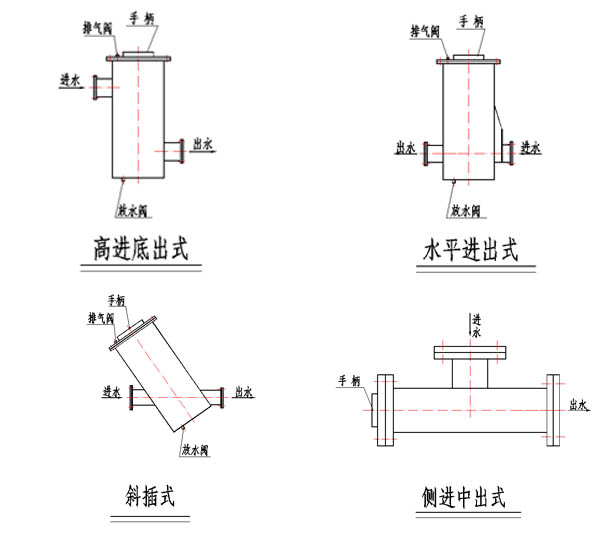我們將根據(jù)客戶的現(xiàn)場(chǎng)尺寸及運(yùn)行工況,在滿足通流比的情況下,為客戶量身定做不同形式的濾水器,如水平進(jìn)出式、斜插式、高進(jìn)低出式、側(cè)進(jìn)中出式等。