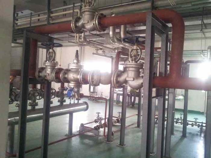 ★減壓系統(tǒng):減壓是由減壓閥和節(jié)流孔板來實現(xiàn),其減壓等級是由進(jìn)口蒸汽壓力及出口蒸汽壓力之差值來決定。