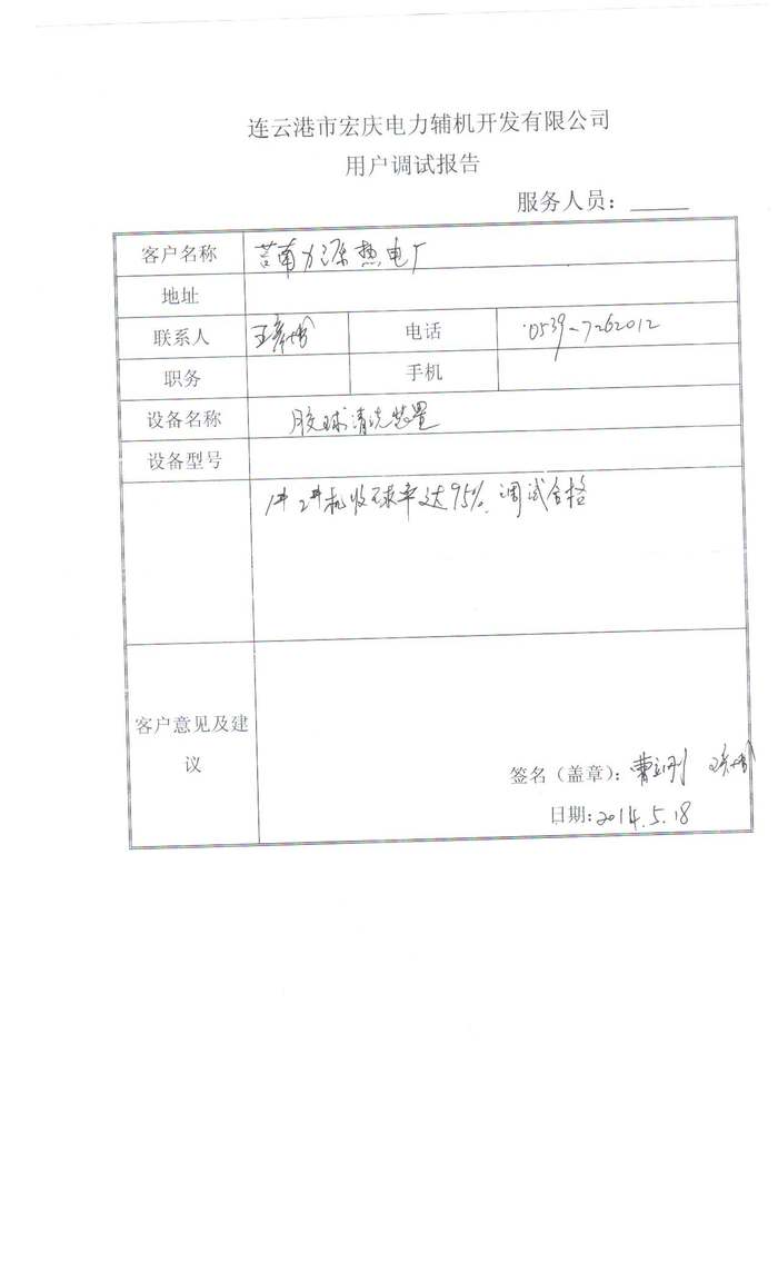 1、在設(shè)計工況下,膠球清洗裝置的收球率測試方法為連續(xù)運行24小時,收球半小時,保證收球率≧98%。