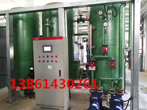 真空除氧器工作原理(射流、吸卷、紊流、傳熱、傳質(zhì)、水膜裙、淋雨狀、飽和)凝結(jié)水及補充水首先進(jìn)入除氧頭內(nèi)旋膜器組水室,在一定壓力下從膜管的小孔斜旋噴向內(nèi)孔,形成高速射流,形成特效水膜,在真空條件下將大量氧氣、氮氣、二氧化碳等氣體解析出來,被羅旋噴射器吸出從排毛管排向大氣。真空除氧器處理后的水溶解氧在100цɡ/L--50цɡ/L之內(nèi),溶解氧達(dá)到部頒運行標(biāo)準(zhǔn)。真空除氧方法一般在0℃~ 60℃溫度下進(jìn)行?蓪崿F(xiàn)水面低溫狀態(tài)下除氧 ,對熱力鍋爐和負(fù)荷波動大而熱力除氧效果不佳的蒸汽鍋爐 ,均可改造成真空除氧,從而獲得滿意的除氧效果,節(jié)省能耗經(jīng)濟效益顯箸。相對于熱力除氧技術(shù)來說:它的加熱條件要求很低 ,鍋爐房自耗汽量減少 ,并且真空除氧器可低位布置 ,運行安全可靠,檢修維護(hù)方便。