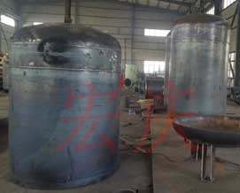 ■水箱:是由筒身和沖壓橢圓形封頭焊制成,內(nèi)部設(shè)置加強(qiáng)圈,底座固定在預(yù)制的工作臺(tái)上,一端固定,另一端為安裝膨脹滾體裝置。水箱上設(shè)有檢修人孔、安全閥接管口、排水口、再沸騰管口、水封筒口、水位計(jì)接口、壓力表口、溫度表口、用水口等。